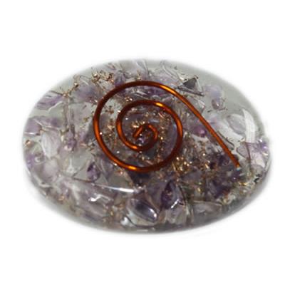 Le cabochon en Orgonite Améthyste est idéal pour l'anti stress et pour apporter sérénité, équilibre et tempérence.